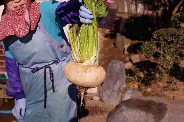 有機質を多く含み水の保持力の強い田の土を畑作に用いることで、レタスやキャベツ、ほうれん草に小松菜、玉ねぎ、里芋そして枝豆などの葉物、豆類は青々と力強く、とても深い味わいとなります。一方、大根やじゃが芋、さつま芋などの根菜にはすこし不向きです。
